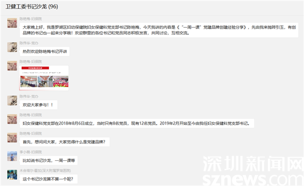 讀特客戶端·深圳新聞網(wǎng)2022年6月20日訊(記者 吳艷 通訊員 韓珊)為落實基層黨建“標準+質(zhì)量+示范”要求,推動黨建業(yè)務工作深度融合,幫助基層黨組織找準黨建品牌創(chuàng)建的切入點和實施路徑,6月16日,羅湖區(qū)委衛(wèi)生健康工委圍繞基層黨建的熱點難點問題,舉辦了一場以交流激發(fā)思考的“書記沙龍”,區(qū)婦保院婦女保健科書記陳艷梅線上分享黨建品牌創(chuàng)建經(jīng)驗和服務群眾的心得體會,68名支部書記熱烈探討,共同交流提高。