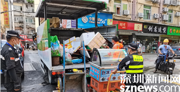 社區(qū)黨委書記張廣華作為草埔東多年的“老書記”,深知九門地“肉菜巷”哪里堆放多、哪家問(wèn)題多、問(wèn)題癥結(jié)在哪里?!凹纫獔?jiān)決果斷,又要合理合法”,每次開展整治行動(dòng)時(shí),張廣華都要強(qiáng)調(diào)這條工作原則,提前部署人員和路線,針對(duì)“肉菜巷”及附近背街小巷進(jìn)行亂堆放集中清理整治,勸導(dǎo)門店規(guī)范電動(dòng)自行車、運(yùn)貨平板車線框內(nèi)擺放,執(zhí)法儀全程錄像?!俺3J悄穷^清理整治剛結(jié)束,這頭張廣華已經(jīng)化身‘掃地僧’了。”一名社區(qū)工作人員接受采訪時(shí)表示?!八谖拿鞒鞘袆?chuàng)建巡查過(guò)程中,除了指導(dǎo)社區(qū)工作人員,還隨時(shí)隨地清理垃圾、整治飛線,清除破損廣告。”