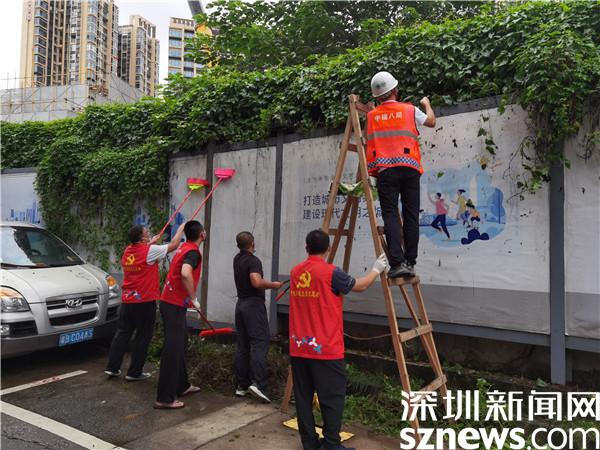 8月12日下午,木棉嶺社區(qū)與中建八局棚改項目黨支部共同組織黨員及志愿者近20人,針對棚改二線路地段的公益廣告圍擋遮擋物進(jìn)行整治清理。活動中,大家在悶熱潮濕的梅雨天氣中,秉承著不怕臟不怕累的精神,充分發(fā)揮黨員先鋒模范作用,即使被蚊蟲叮咬也沒有絲毫影響積極性。男同志負(fù)責(zé)剪雜草、砍樹枝,女同志緊隨其后收拾殘枝樹葉,配合默契,經(jīng)過近兩個小時的清理和保潔,棚改二線路沿路程的公益廣告圍擋光潔如新。