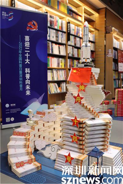 在科普月期間,羅湖書城在一樓“長盒子”空間,特別打造了“科創(chuàng)科普 兩翼齊飛”主題教育展。展覽圍繞“中國這十年科技創(chuàng)新交出亮眼成績單”“紀念科普法頒布20周年”兩大重要節(jié)點,策劃了“科技創(chuàng)新”“科普法治”“互動學習”三大內(nèi)容板塊,集中展示中國科技發(fā)展報告、《中華人民共和國科學技術(shù)普及法》《深圳經(jīng)濟特區(qū)科學技術(shù)普及條例》等內(nèi)容,圖文并茂地講述了中國科技發(fā)展成果和中國科普工作成果。