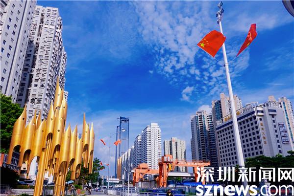 讀特客戶端·深圳新聞網(wǎng)2022年10月1日訊(記者 劉嘉敏)國慶假期第一天,行走在羅湖區(qū)的大街小巷,處處洋溢著喜慶的濃厚氛圍。一面面鮮紅的國旗懸掛在城區(qū)主次干道,在藍(lán)天白云的襯托下,鮮艷的“中國紅”迎風(fēng)飄揚(yáng),成為城區(qū)一道最靚麗的風(fēng)景線。深圳新聞網(wǎng)記者帶著鏡頭走進(jìn)羅湖,將這一幕幕迎風(fēng)飄揚(yáng)的“紅色”定格。