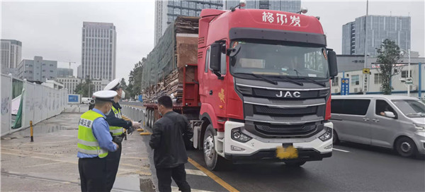 危險!羅湖交警快速查處重型掛車超高運輸上路