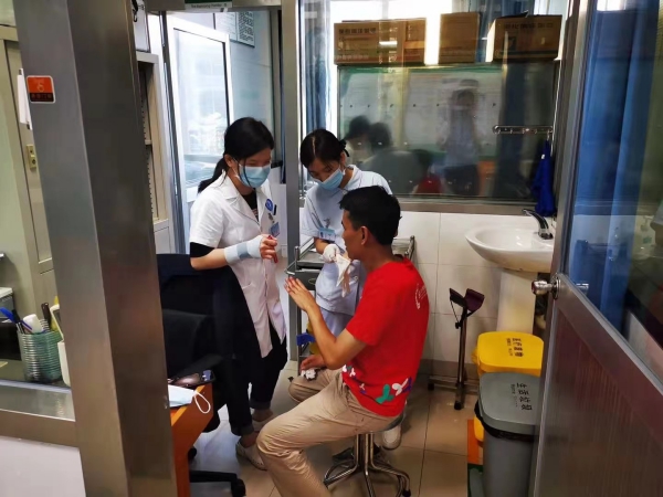 熬夜投入防疫工作意外摔傷 社康包扎偶遇防疫伙伴