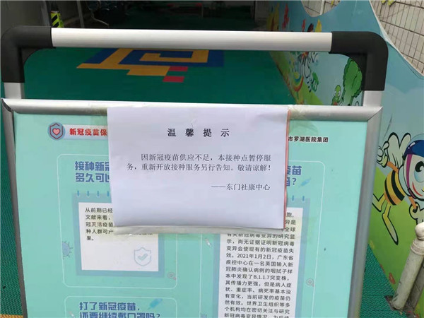 4月6日,記者在羅湖區(qū)東門社康中心看到,該社康貼出了疫苗暫時供應(yīng)不足的告知。記者隨后走訪了其他幾個接種點(diǎn),一些社康也紛紛貼出了類似溫馨提示。記者了解到,除羅湖外,其他區(qū)的接種點(diǎn)也出現(xiàn)了類似“缺苗”現(xiàn)象。對此,記者采訪了羅湖區(qū)衛(wèi)健局,相關(guān)負(fù)責(zé)人表示,這段時間轄區(qū)新冠病毒疫苗接種率大幅提升,目前缺苗只是暫時性的,正在加強(qiáng)調(diào)配,隨時可能到苗,請大家耐心等待,同時留意相關(guān)提示。