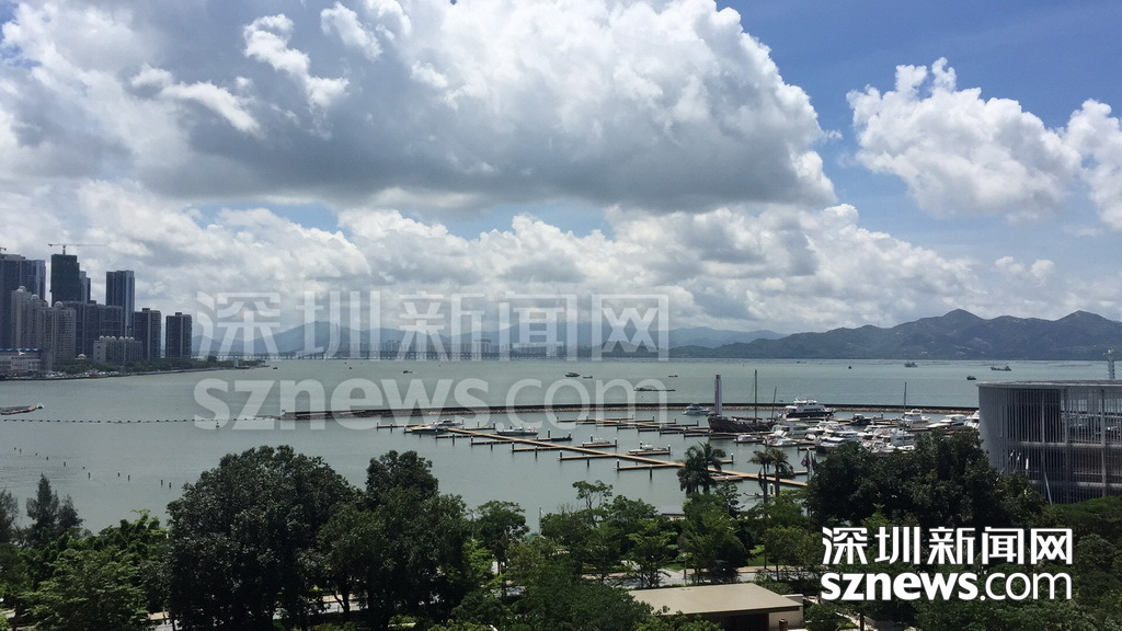 在酒店臨海客房陽臺可看到深圳灣大橋以及附近的游艇碼頭