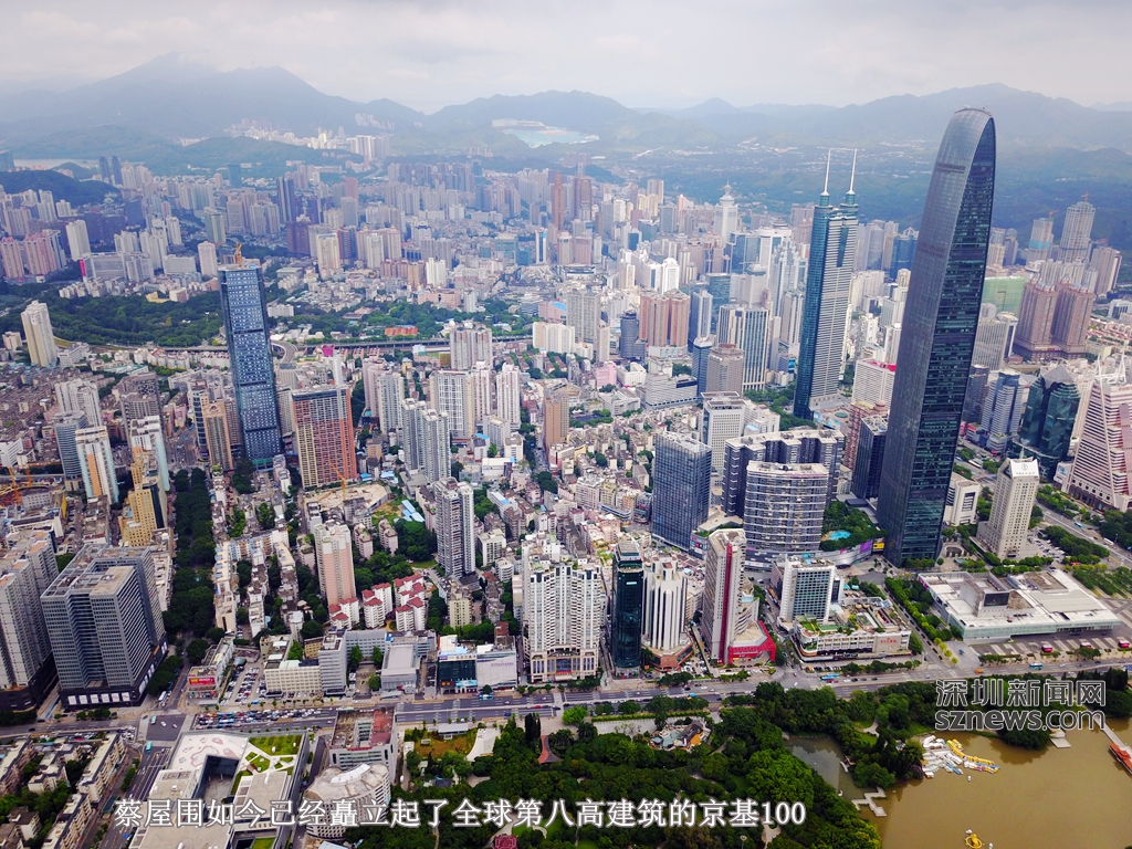 2011年,441.8米高的京基100大廈在距離地王大廈不遠(yuǎn)的地方建成。兩個(gè)超高建筑選址蔡屋圍,可謂眼光一致。