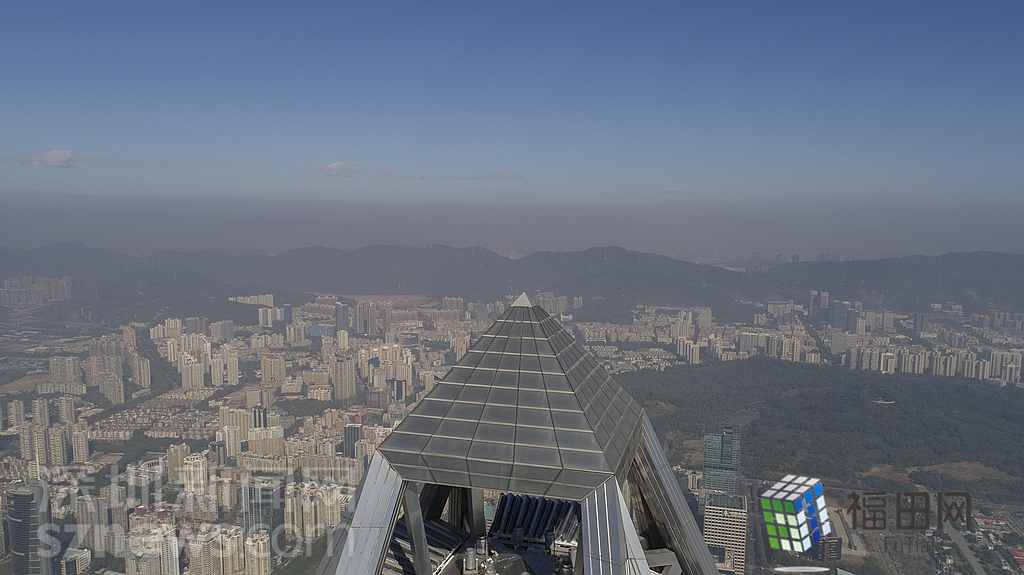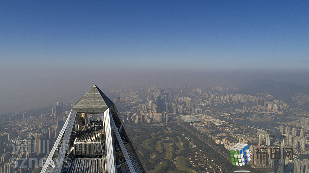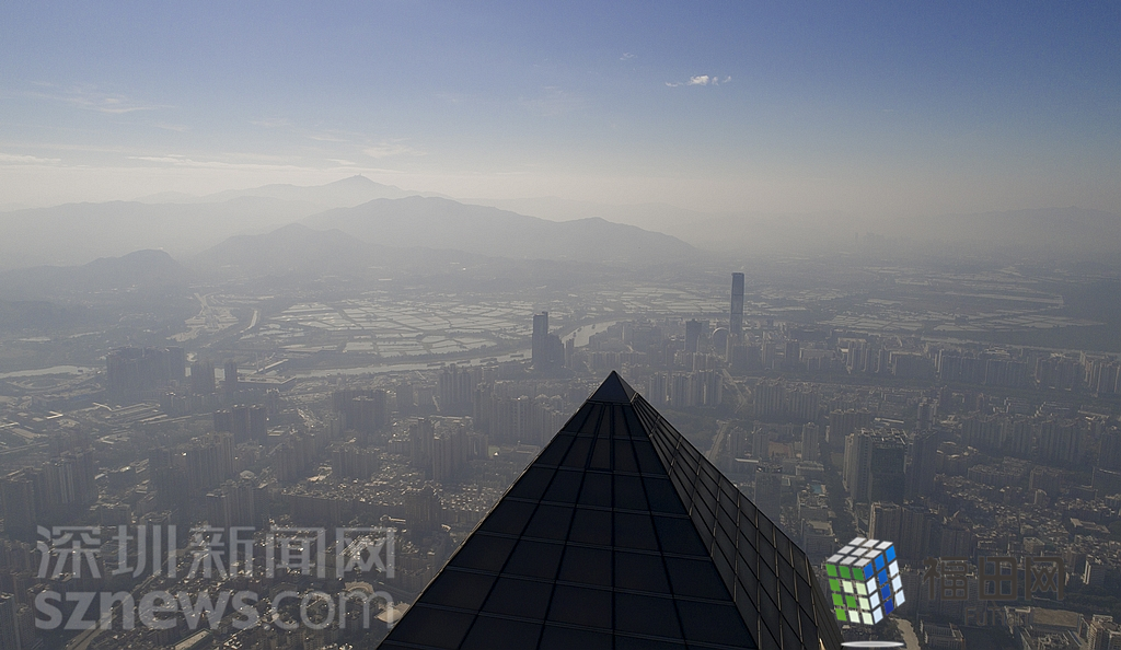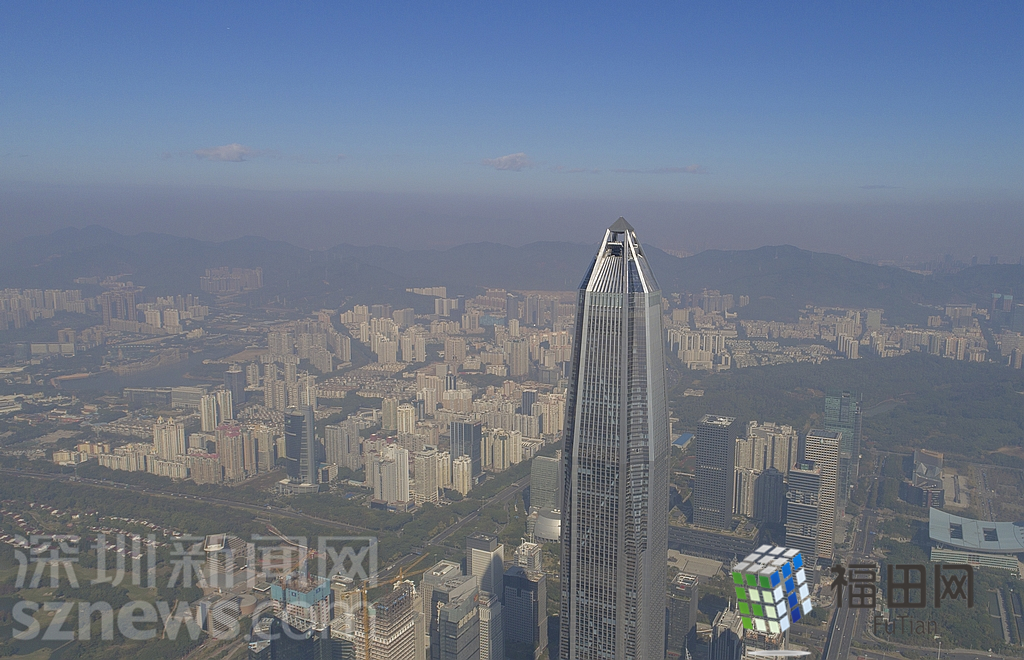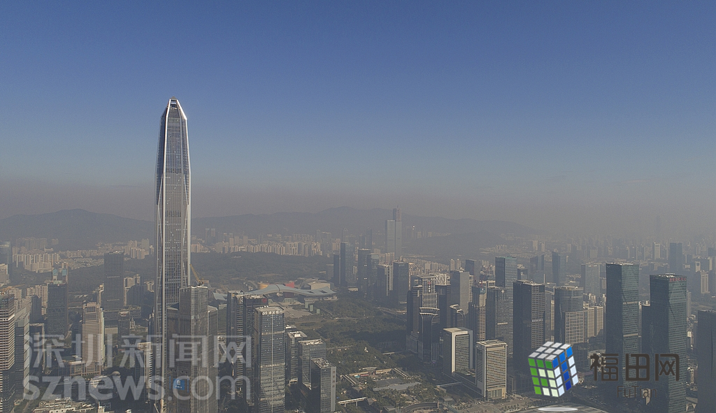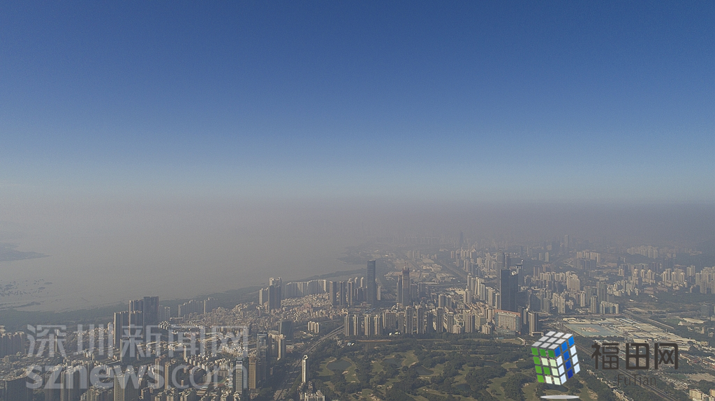 1月18日上午,記者操控?zé)o人機(jī)俯瞰深圳中心區(qū)發(fā)現(xiàn),灰霾將天空“割裂”成一道涇渭分明的界線,把城市籠罩得如同一個充滿霧靄的森林。從平安金融大廈的上空遠(yuǎn)眺,西南面的深圳灣在灰霾的籠罩下變成了一片“沙漠”,東面的京基一百幾乎被灰霾“吞沒”,北邊平時肉眼可看的梅林山也因為能見度較低變得若隱若現(xiàn),南面的米埔濕地也被云遮霧繞。