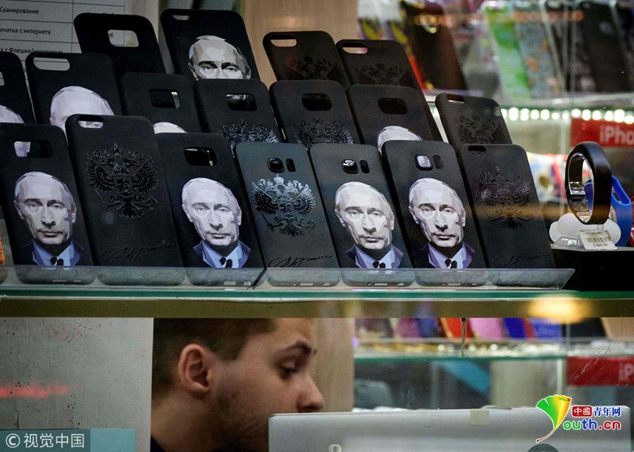 當(dāng)?shù)貢r間2018年3月13日,俄羅斯莫斯科,俄羅斯大選將于3月18日舉行,大選主題紀念品熱賣。