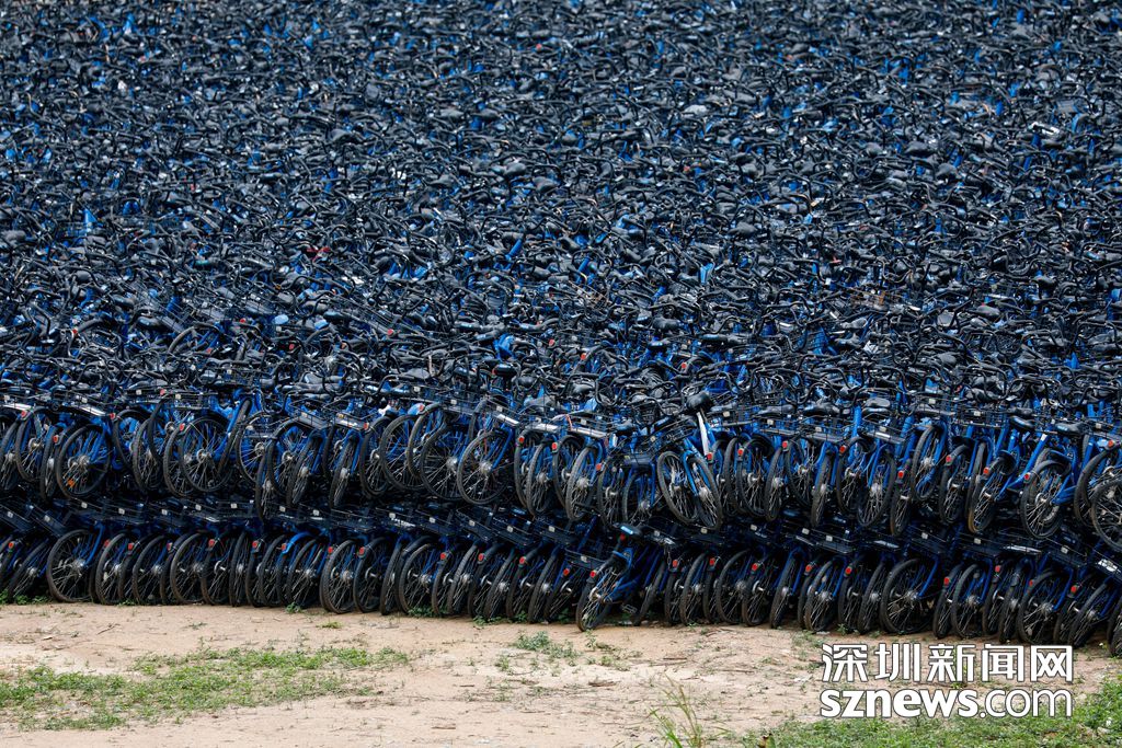 圖為深圳市場投放的小藍(lán)單車目前都集中存放在龍崗區(qū)某處