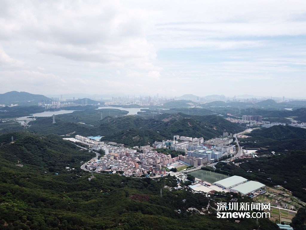 從羊臺(tái)山風(fēng)門凹山腰看西麗水庫及山腳下麻磡村