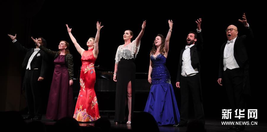 6月30日,在美國加利福尼亞州舊金山赫伯斯特劇院,著名華裔歌唱家田浩江(右一)和青年歌唱家們演唱《從茉莉花到圖蘭朵》。當日,著名華裔歌唱家田浩江偕6位參加過iSING!國際青年歌唱家藝術(shù)節(jié)的歌唱家舉辦“田浩江舊金山演唱會”。iSING!國際青年歌唱家藝術(shù)節(jié)創(chuàng)辦于2011年,集教育、訓練和演出于一體,為全球青年歌者提供學習和實踐的機會。在本場演唱會上,來自不同國家的藝術(shù)家們演唱中外經(jīng)典歌曲,為觀眾獻上一臺中西文化交融的聽覺盛宴。新華社記者吳曉凌攝