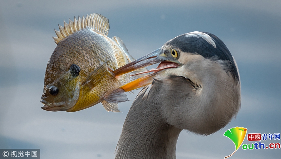當(dāng)?shù)貢r間2018年1月29日,美國田納西州納什維爾的拉德諾湖州立公園,一只大藍鷺刺穿了一條“巨大的”藍鰓魚,一口氣把它吞下。