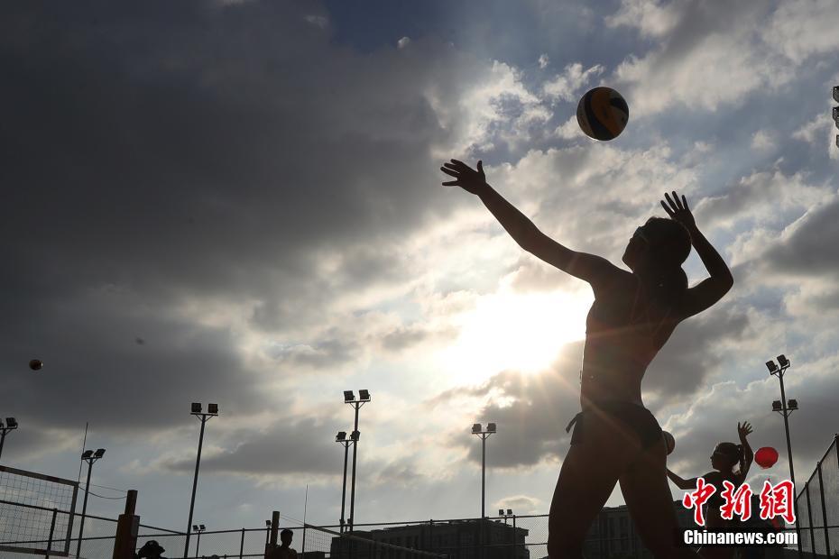7月11日,在南京舉行的2018國際排聯(lián)沙灘排球U19世界錦標(biāo)賽進(jìn)入第二天的賽程,中外運(yùn)動員輪番上場,捉對“廝殺”,一決高下。中新社記者泱波 攝
