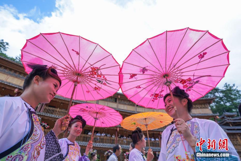 7月14日,貴州榕江,相思節(jié)上身著盛裝的侗族婦女。當(dāng)日,貴州省榕江縣樂(lè)里七十二寨舉行“六月六”相思節(jié),當(dāng)?shù)厣贁?shù)民族身著節(jié)日的盛裝,舉行盛裝巡游、吹蘆笙、踩歌堂等民俗活動(dòng)歡度節(jié)日。中新社記者賀俊怡 攝