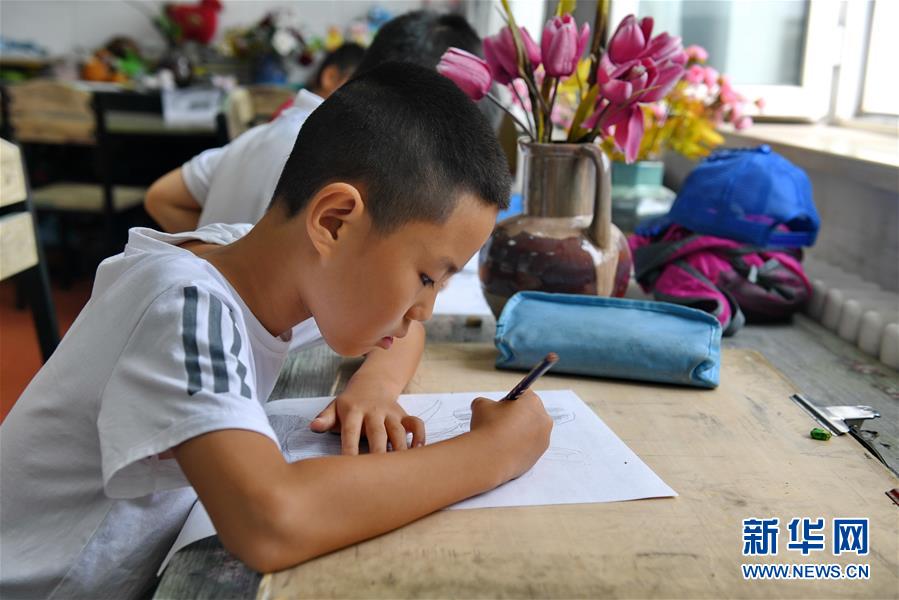 7月16日,在長(zhǎng)春市少年宮,學(xué)生在進(jìn)行繪畫(huà)練習(xí)。