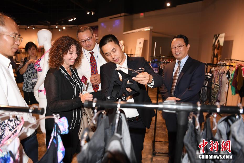 當(dāng)?shù)貢r(shí)間7月17日,深圳市內(nèi)衣行業(yè)協(xié)會(huì)在中美國(guó)際(美東)創(chuàng)業(yè)港——默特爾比奇市Waccoma Center舉行深圳內(nèi)衣產(chǎn)業(yè)推介會(huì)暨深圳內(nèi)衣美國(guó)展銷(xiāo)中心揭牌儀式。中美國(guó)際(美東)創(chuàng)業(yè)港聯(lián)合深圳市內(nèi)衣行業(yè)協(xié)會(huì)為深圳內(nèi)衣品牌進(jìn)駐美東市場(chǎng)搭建綠色通道和產(chǎn)業(yè)孵化平臺(tái),采用“時(shí)尚秀+靜態(tài)展”的形式,促進(jìn)中美內(nèi)衣文化和時(shí)尚的交流。圖為默特爾比奇市市長(zhǎng)布蘭達(dá)Brenda Bethune女士參觀深圳內(nèi)衣展廳。 中新社記者 陳文 攝