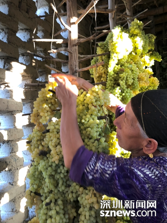 維族老鄉(xiāng)告訴我們,葡萄干的制作有三種方法:太陽曬干、樹上風(fēng)干、土房晾干。趙春麗攝