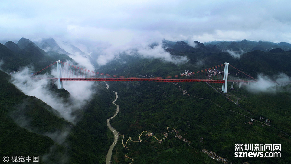 ???深圳新聞網(wǎng)訊 2018年6月26日,一場(chǎng)大雨后貴州省安順市關(guān)嶺縣壩陵河大峽谷云霧繚繞,橫跨兩岸的壩陵河大橋在云霧中時(shí)隱時(shí)現(xiàn),更顯雄偉壯觀。