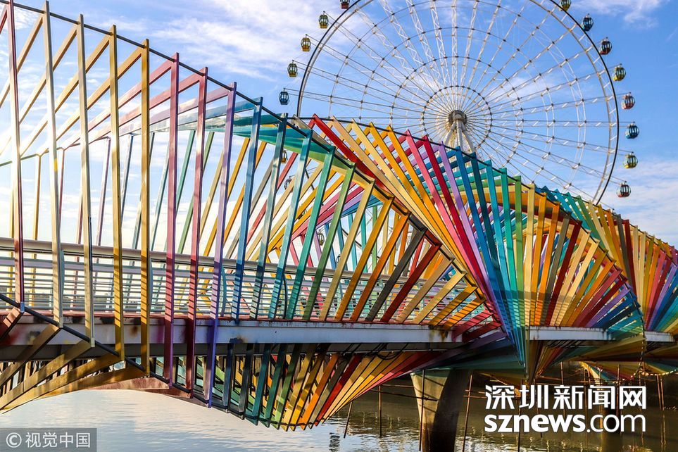 “七彩橋”亮相青島 色彩斑斕宛如童話世界