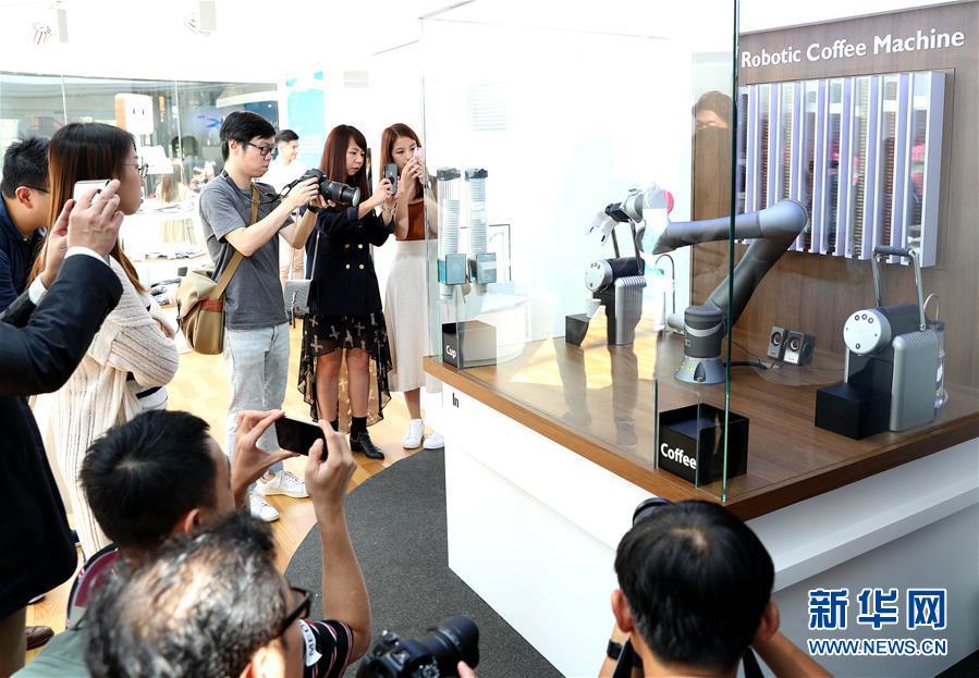 9月5日,無人零售商店內(nèi)的機(jī)器人在做咖啡。當(dāng)日,香港首家AlipayHK(支付寶香港版)無人零售商店在九龍區(qū)奧海城開業(yè)。商店占地約370平方米,售賣多款時(shí)尚精品、服飾等,還引入一臺(tái)智能機(jī)械臂,為顧客現(xiàn)場(chǎng)沖調(diào)香濃咖啡。新華社記者李鋼攝