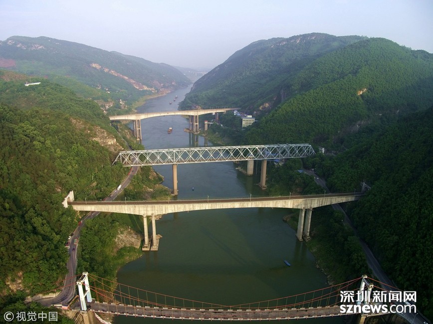 相關(guān)鏈接 五橋“疊翠”!重慶又一景點爆紅網(wǎng)絡(luò)! 2018年5月18日,重慶,在嘉陵江重慶觀音峽段,間隔不到1000米的江面上橫跨著五座大橋,形成了五橋“疊翠”的美麗景觀,生動展示了“橋都”重慶的變化。 畫面中由近及遠(yuǎn)分別是新朝陽橋、老朝陽橋、遂渝鐵路橋、襄渝鐵路橋、蘭渝鐵路橋。