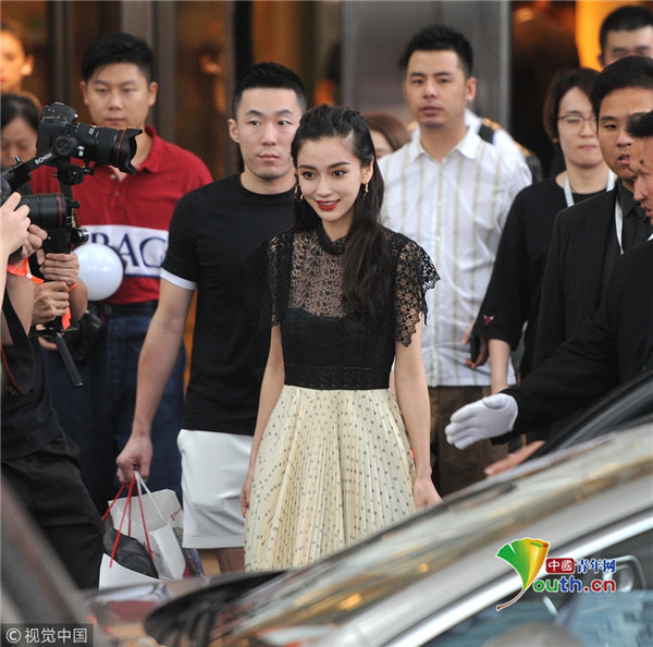 Angelababy穿黑色蕾絲薄紗裙小秀性感