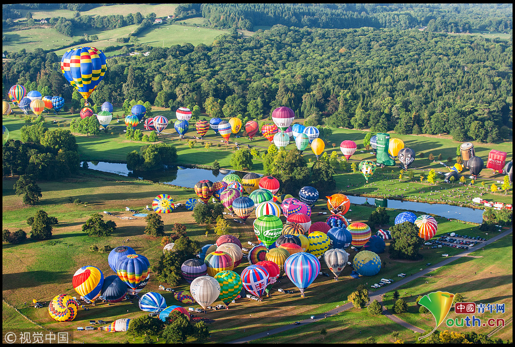 英國170多只熱氣球齊飛創(chuàng)紀錄 如田園夢幻世界