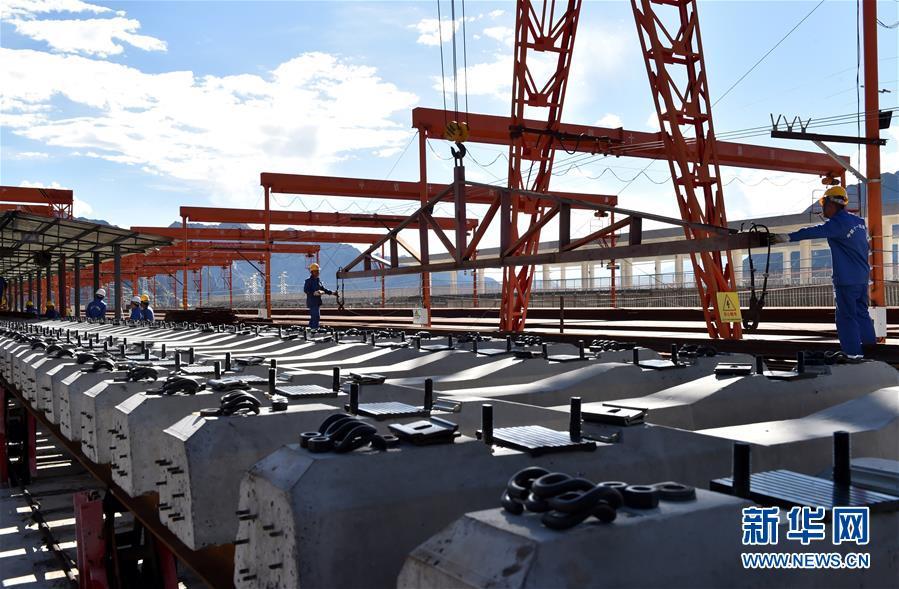 9月19日,在位于西藏拉薩曲水縣的中鐵十一局三公司協(xié)榮鋪架基地,用于架設(shè)川藏鐵路拉薩至林芝段(拉林鐵路)的首批軌排完成生產(chǎn)下線。據(jù)悉,拉林鐵路鋪軌任務(wù)全長400余公里,需要生產(chǎn)軌枕44萬多根。 新華社記者 覺果 攝