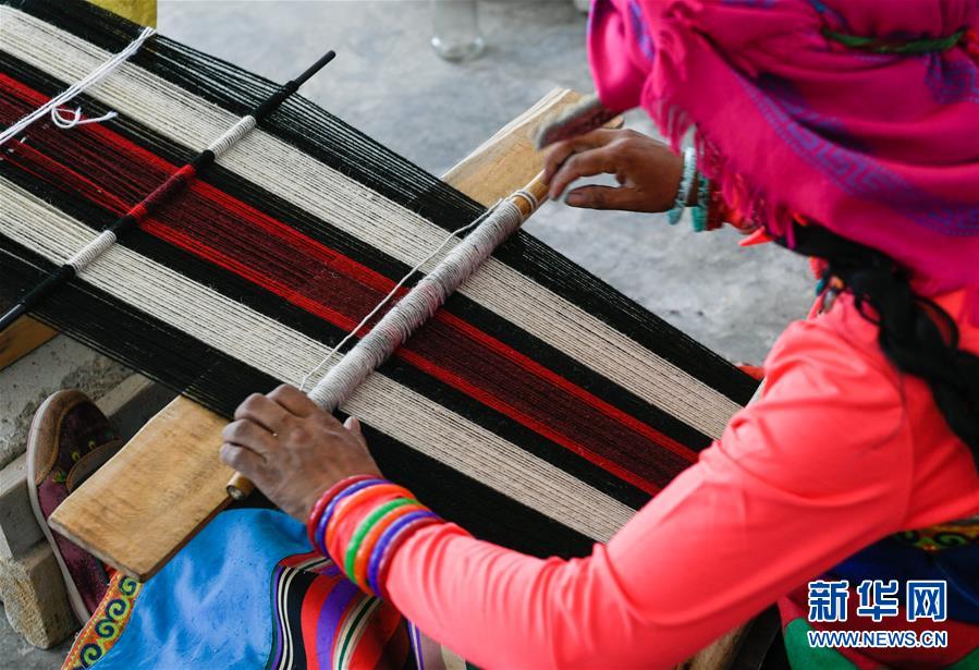 員工卓瑪在鹽湖鄉(xiāng)羌麥村民族手工編織廠工作(9月19日攝)。 2018年,西藏阿里地區(qū)革吉縣鹽湖鄉(xiāng)政府自籌資金成立羌麥村民族手工編織廠,編織廠將當?shù)貍鹘y(tǒng)手工編織技藝與市場需求相結(jié)合,生產(chǎn)手提包、圍脖、腰帶、毛毯、藏式頭巾等產(chǎn)品,并參加旅游推介活動,拓寬編織品銷售渠道,助力當?shù)鼐用衩撠殹?新華社記者 劉東君 攝