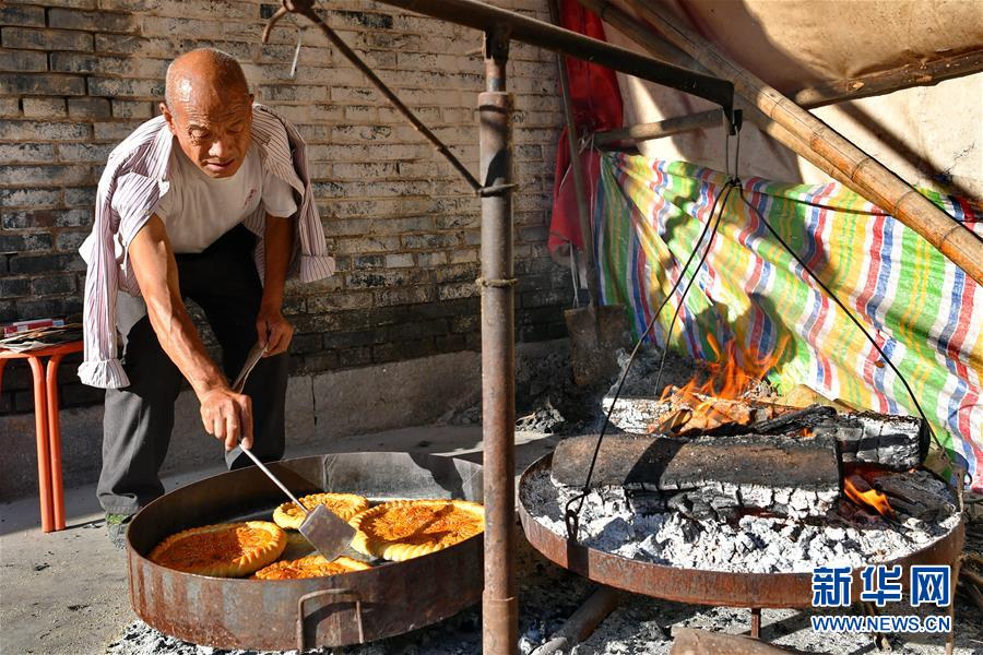 9月22日,段富善在翻看月餅的烘烤情況。 中秋節(jié)來臨之際,山西省晉城市澤州縣南嶺鄉(xiāng)段河村的段富善一家人忙碌起來,他們家制作的“柴火月餅”遠(yuǎn)近聞名。 “柴火月餅”起源于明清時期,餡料以糖搭配花生仁、芝麻、玫瑰等,有近10道制作工序,其中最有特色的是木柴烤制工藝,烘烤師傅必須掌握好火候,才能烤出外皮酥脆、餡料飄香的月餅。 新華社記者 曹陽 攝