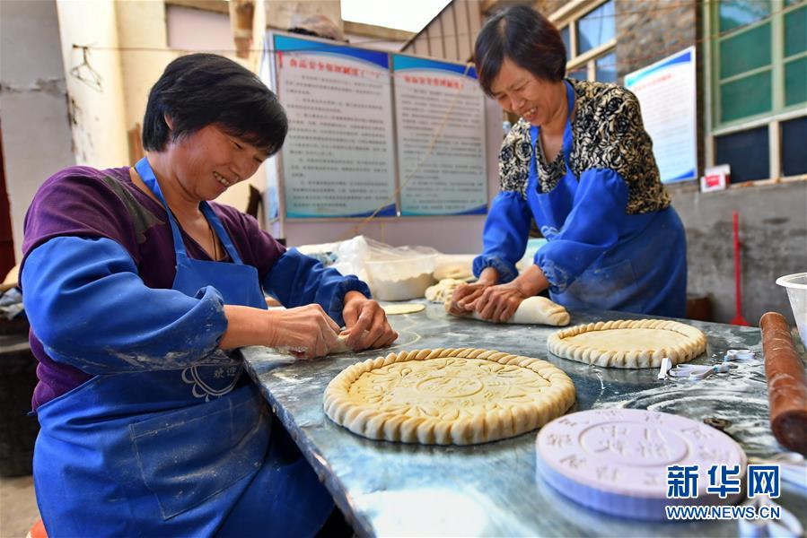 9月22日,段河村村民段粉拽(左)和段金花在制作月餅。 中秋節(jié)來臨之際,山西省晉城市澤州縣南嶺鄉(xiāng)段河村的段富善一家人忙碌起來,他們家制作的“柴火月餅”遠(yuǎn)近聞名。 “柴火月餅”起源于明清時期,餡料以糖搭配花生仁、芝麻、玫瑰等,有近10道制作工序,其中最有特色的是木柴烤制工藝,烘烤師傅必須掌握好火候,才能烤出外皮酥脆、餡料飄香的月餅。 新華社記者 曹陽 攝