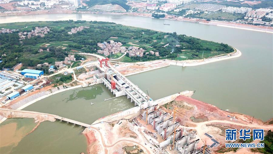這是西江黃金水道上的南寧市邕寧水利樞紐(5月18日攝,無人機航拍)。 新華社記者 周華 攝