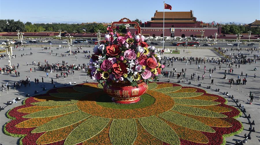 祝福祖國花籃綻放天安門廣場 已連 ...