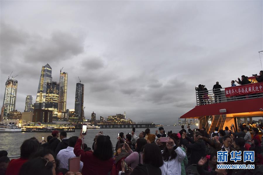 9月23日,在美國(guó)紐約,人們參加游船賞月活動(dòng)。 23日晚,紐約華人社團(tuán)聯(lián)合總會(huì)等20多個(gè)僑團(tuán)聯(lián)合主辦哈得孫河游船賞月活動(dòng)。游船從哈得孫河到東河,途經(jīng)炮臺(tái)公園、自由女神像、華爾街金融區(qū)、聯(lián)合國(guó)大樓等著名景點(diǎn)。 新華社記者韓芳攝