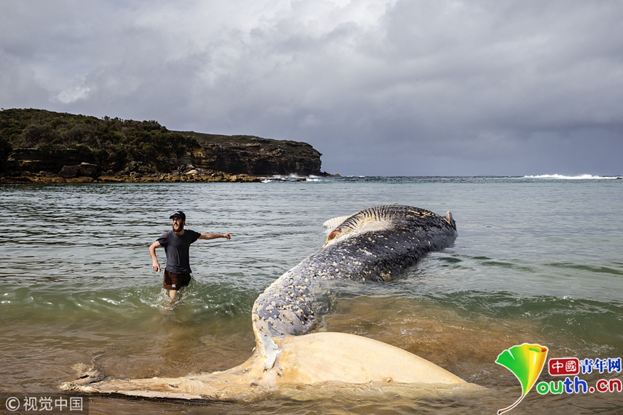 悉尼沙灘出現(xiàn)罕見大須鯨尸體