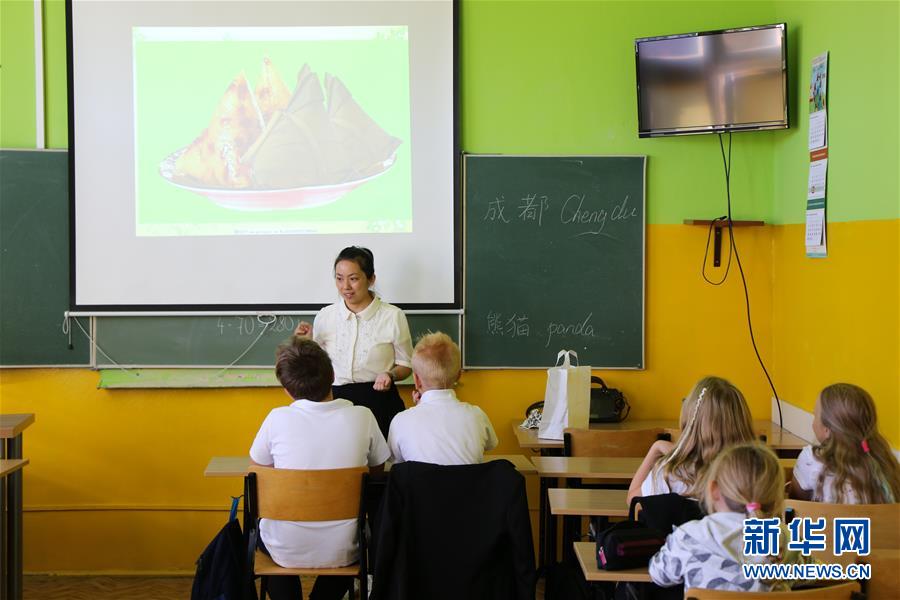 9月25日,在波蘭羅茲第一小學(xué),成都青白江區(qū)外國(guó)語(yǔ)小學(xué)老師李艷向波蘭小學(xué)生介紹中國(guó)美食。成都青白江區(qū)外國(guó)語(yǔ)小學(xué)與波蘭羅茲第一小學(xué)25日在波蘭中部城市羅茲簽署友好學(xué)校合作協(xié)議。這是繼成都與羅茲2015年結(jié)為友城之后,兩座城市人文交流合作的又一新成果。2013年,東起成都青白江、西至羅茲的中歐班列(蓉歐快鐵)開(kāi)通。5年來(lái),來(lái)往兩地的班列不斷增加,有力促進(jìn)了成都與羅茲在經(jīng)貿(mào)、教育、文化等多領(lǐng)域的交流與合作。新華社記者 陳序 攝