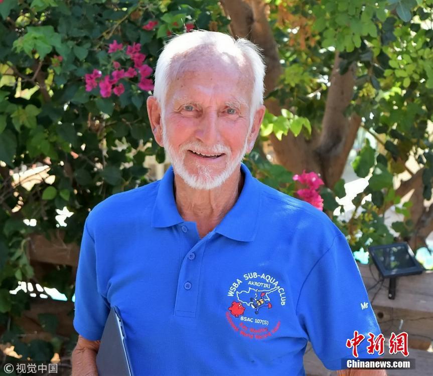 當?shù)貢r間2018年9月1日,塞浦路斯,95歲的英國潛水員雷·伍利(Ray Woolley)以44分鐘下潛40.5米的成績打破了自己94歲達成的記錄(41分鐘下潛38.1米),二度刷新了世界上年齡最大的男性潛水員最好成績。在此次下潛中,這位二戰(zhàn)退伍老兵對距塞浦路斯南部城鎮(zhèn)拉納卡約2公里處的海域進行了探索,1980年一艘名為“芝諾比亞號”(Zenobia)的貨船在這里進行首次航行時沉沒。圖片來源:視覺中國