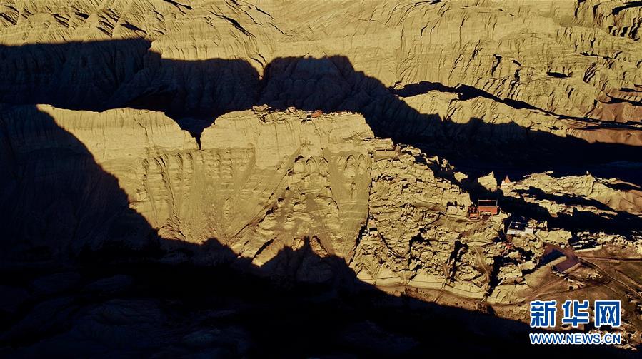 從空中鳥瞰西藏阿里地區(qū)東嘎遺址(9月11日無人機(jī)拍攝)。 西藏阿里地區(qū)素有“世界屋脊的屋脊”之稱,平均海拔4000米以上。這里河流縱橫、湖泊密布、土林林立。從空中鳥瞰阿里大地,呈現(xiàn)出一幅幅獨(dú)特的美景。 新華社記者 普布扎西 攝