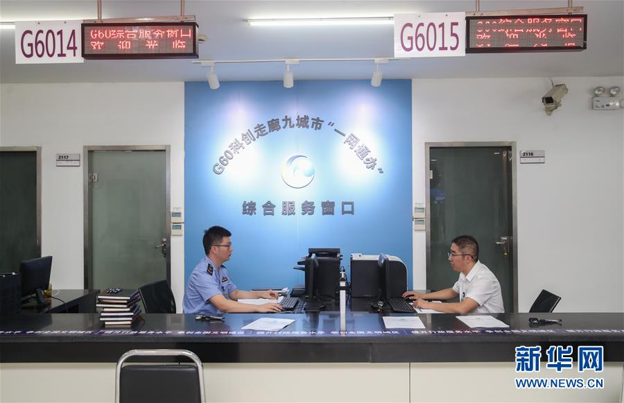 這是上海市松江區(qū)行政服務中心內的G60科創(chuàng)走廊九城市“一網通辦”綜合服務窗口(9月28日攝)。新華社記者 丁汀 攝