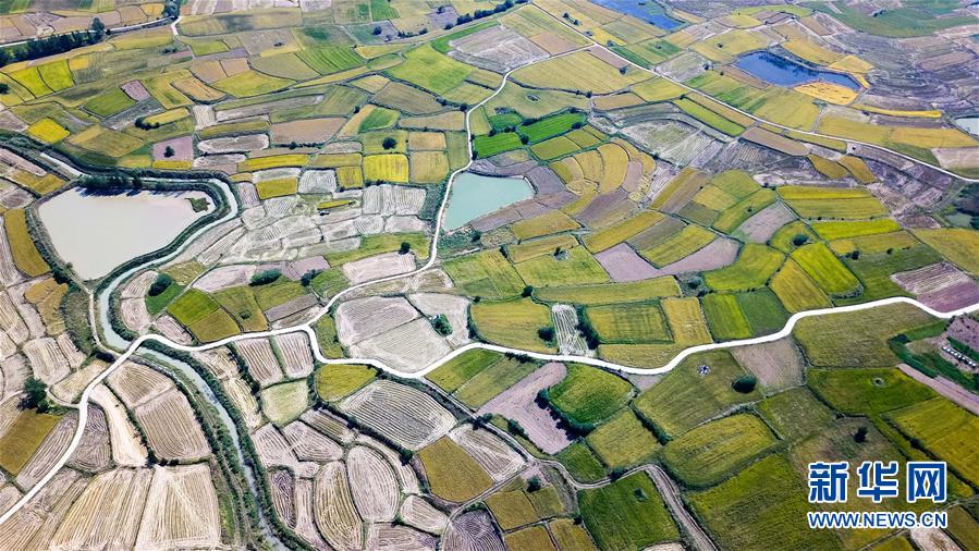 這是安徽鳳陽小崗村稻田景象(9月27日無人機拍攝)。 新華社記者 張端攝