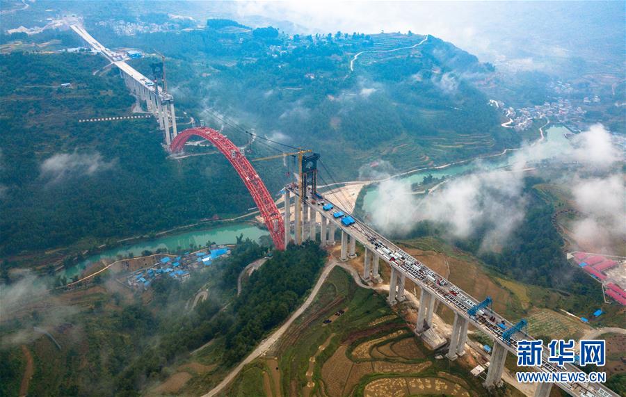 9月12日使用無人機(jī)拍攝的大小井特大橋。 目前,橫跨在貴州省羅甸縣大井河上的大小井特大橋建設(shè)進(jìn)入沖刺階段。大小井特大橋全長1.5公里,主跨450米,是世界最大跨徑上承式鋼管混凝土拱橋。據(jù)了解,該橋是平塘至羅甸高速公路關(guān)鍵性工程,對打通貴州“斷頭路”,助推滇黔桂石漠化片區(qū)脫貧攻堅(jiān)具有重要意義。 新華社記者劉續(xù)攝
