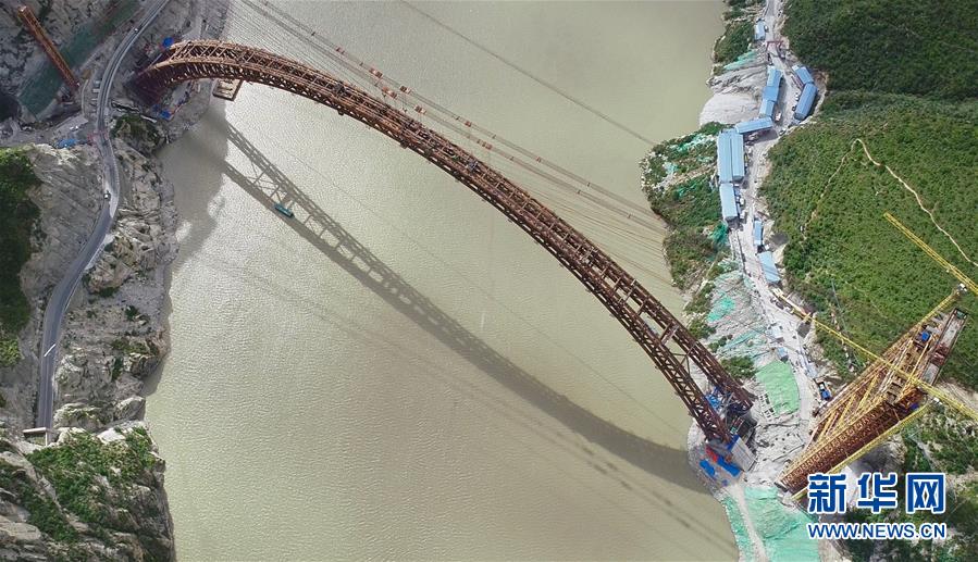 9月28日無人機(jī)拍攝的川藏鐵路拉林段重點標(biāo)志性工程藏木特大橋。 當(dāng)日,隨著最后一節(jié)鋼管拱的對位和鎖定完畢,川藏鐵路拉林段藏木特大橋成功合龍,標(biāo)志著大橋主體結(jié)構(gòu)施工取得了關(guān)鍵性勝利。藏木特大橋由中國中鐵廣州局集團(tuán)承建,拱高112米,橋橫跨雅魯藏布江峽谷,水深66米。 新華社記者普布扎西攝