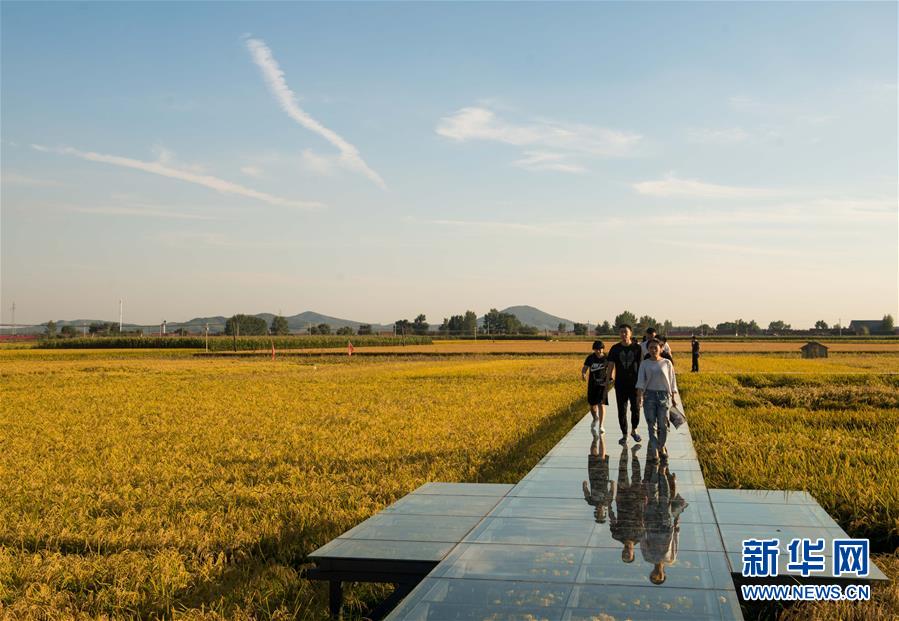 在吉林省舒蘭市,游人在稻田間行走(9月19日攝)。 金秋十月,位于“黃金水稻帶”的吉林省喜迎豐收,全省1200多萬畝水稻陸續(xù)開鐮。 記者在吉林省水稻主產(chǎn)區(qū)走訪發(fā)現(xiàn),連年豐收的喜人圖景背后,蘊藏著許多引人矚目的“時代之變”。 新華社記者 許暢 攝