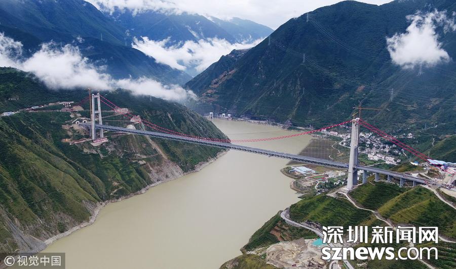 深圳新聞網(wǎng)訊 全長(zhǎng)1411米、跨徑1100m、總造價(jià)超過(guò)10億元,被譽(yù)為“川藏第一橋”的雅康高速瀘定大渡河興康特大橋路面施工完成,具備了通行能力。