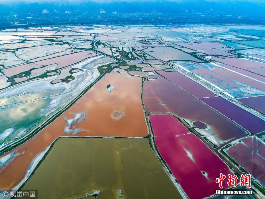 10月6日,山西省運城鹽湖景區(qū)鹽湖秋日美景。入秋以來,隨著氣溫的改變,山西省運城鹽湖泛起出色彩斑斕、美不勝收的秋天特有的七彩景致,非常迷人。尚建周 攝 圖片來源:視覺中國