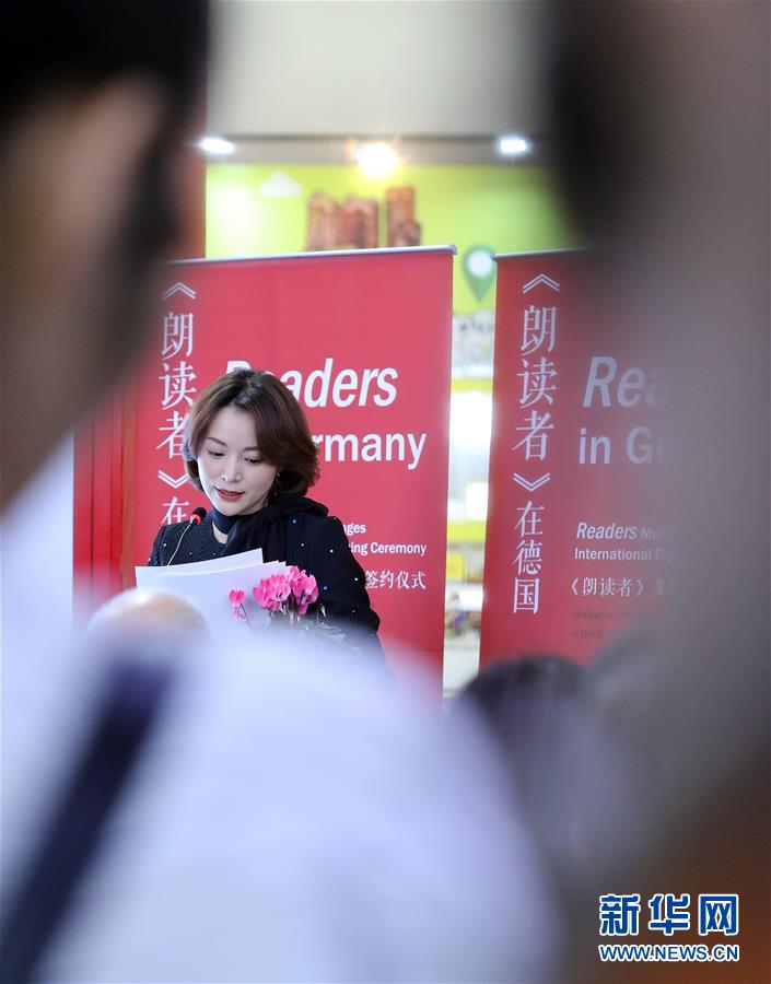 10月10日,在德國(guó)法蘭克福,中國(guó)電視節(jié)目主持人董卿在第70屆法蘭克福書(shū)展中國(guó)展區(qū)出席《朗讀者》朗讀會(huì)。