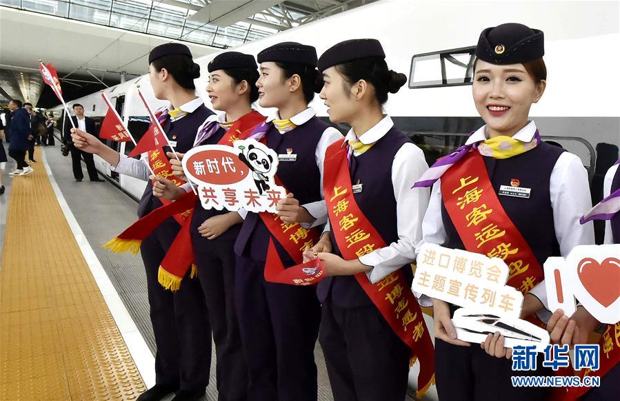當(dāng)日,首列復(fù)興號“進(jìn)口博覽會主題宣傳列車”從上海虹橋站發(fā)車。這輛滿載著此次盛會“知識點(diǎn)”和“信息量”的高鐵列車,將在京滬高鐵線上運(yùn)行,成為進(jìn)口博覽會的“流動(dòng)宣傳窗”。