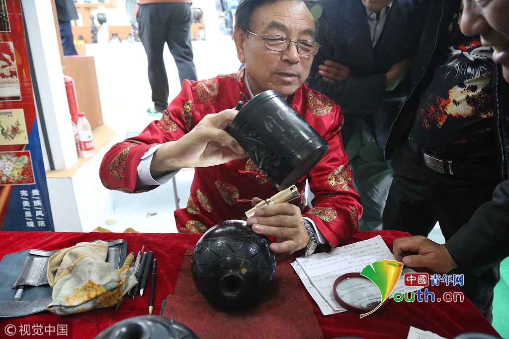 濟南一大爺黑陶鼎上刻字 1個字不到1毫米需用放大鏡看