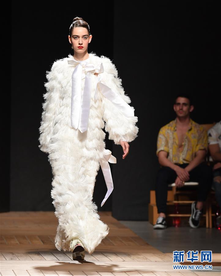 10月13日,在葡萄牙首都里斯本舉行的第51屆里斯本時裝周上,模特展示葡萄牙設(shè)計(jì)師路易斯·卡瓦略設(shè)計(jì)的新款時裝。 新華社記者張立云攝