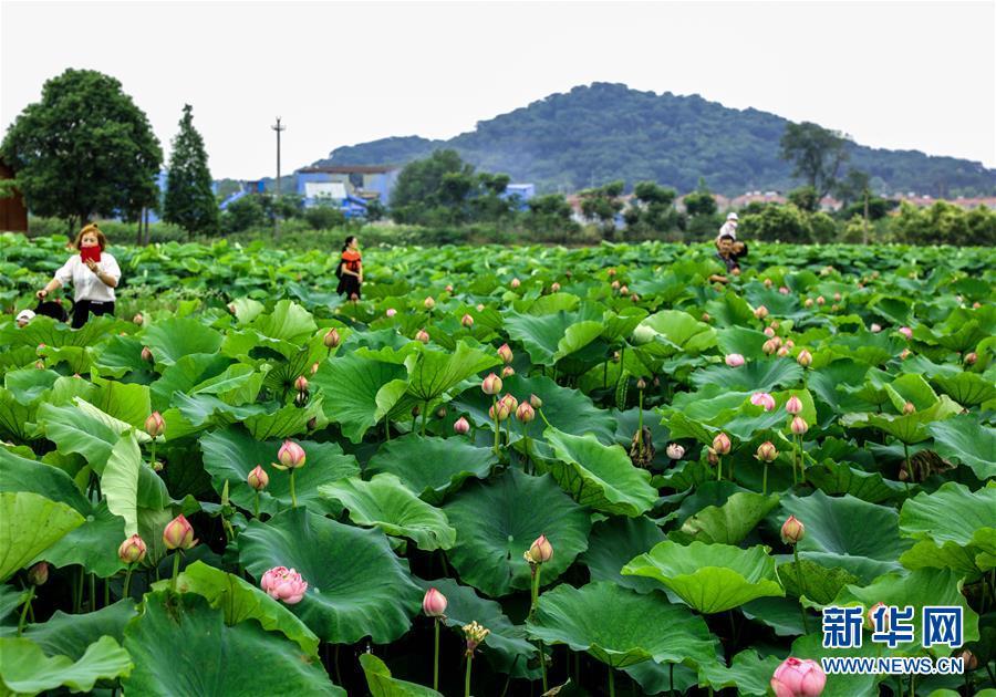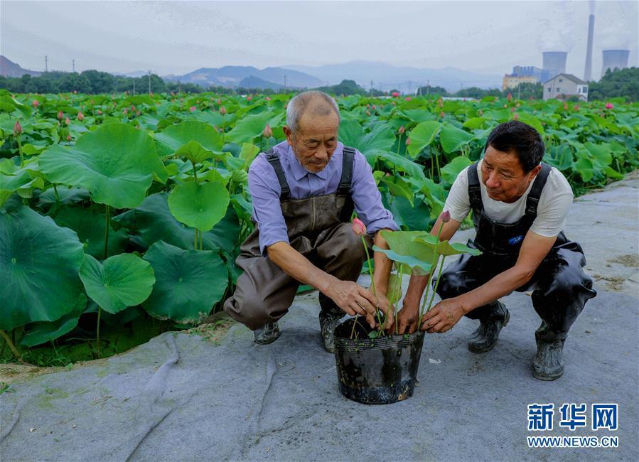 6月3日,荷農(nóng)們將觀賞性荷花裝盆準(zhǔn)備銷售。 進(jìn)入初夏時(shí)節(jié),浙江省湖州市長(zhǎng)興縣呂山鄉(xiāng)圣蓮苑荷花基地內(nèi)200多畝30多種各色荷花競(jìng)相開放,該基地也迎來了荷花銷售和旅游觀光的旺季。據(jù)介紹,呂山鄉(xiāng)是浙江省長(zhǎng)興縣當(dāng)?shù)貍鹘y(tǒng)的蓮藕產(chǎn)區(qū),近年來開始逐步升級(jí)打造“荷花之鄉(xiāng)”。不同于傳統(tǒng)的種荷收藕的思路,當(dāng)?shù)亟柚吧鷳B(tài)+創(chuàng)意”的理念種植、銷售觀賞盆栽荷花,一畝觀賞性荷花的產(chǎn)值可達(dá)到8萬(wàn)元,比普通種植蓮藕增收超過20倍,同時(shí)也推動(dòng)了鄉(xiāng)村旅游經(jīng)濟(jì),帶動(dòng)荷農(nóng)收入增長(zhǎng),助力鄉(xiāng)村振興。新華社記者徐昱 攝